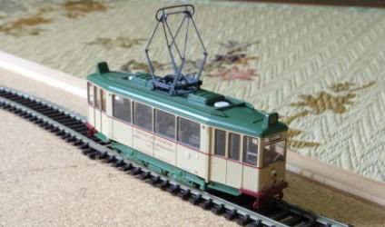 どちらの模型もプラスティック製だけど、ディテールといい走りといい素晴らしい出来だ。最近の鉄道模型は、小型の低消費電力のモーターが使用されているので、乾電池でもすいすい走る。小型のレイアウトを作って、屋外で走らせてみたい。 |