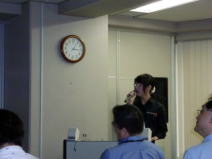 続いて㈱ラムダシステムズ営業情報・システム推進統括部統轄リーダーの安原哲歩氏がラムダシステムズ社の概要説明、汎用テロップシステムNeo-nの主な機能等の説明を行った後、同社のクリエイティブサービス本部企画部アートディレクターの中村和久氏がNeo-nの入力システムを使用し、豊富な機能や特長について実機を使用して説明・デモを行った。